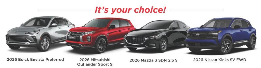 First Prize: Your choice of $25,000 cash or one of four stunning 2026 vehicles pictured below.