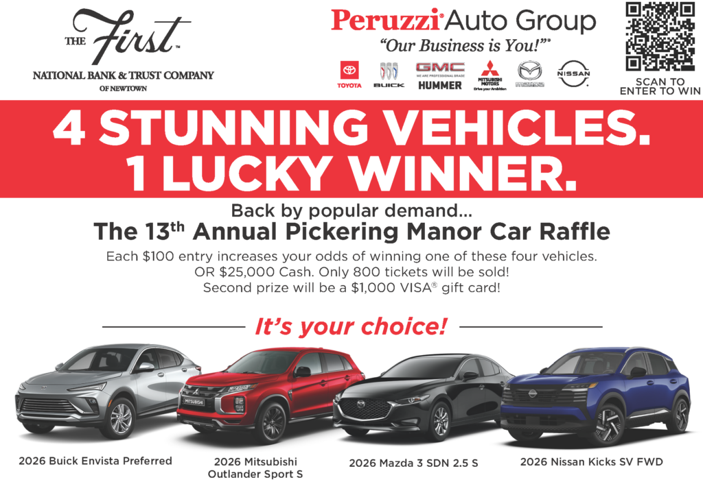 Mark your calendars! Pickering Manor will host its 13th Annual Car Raffle in April of 2026. With only 800 tickets available, this exciting event offers you a chance to win big!