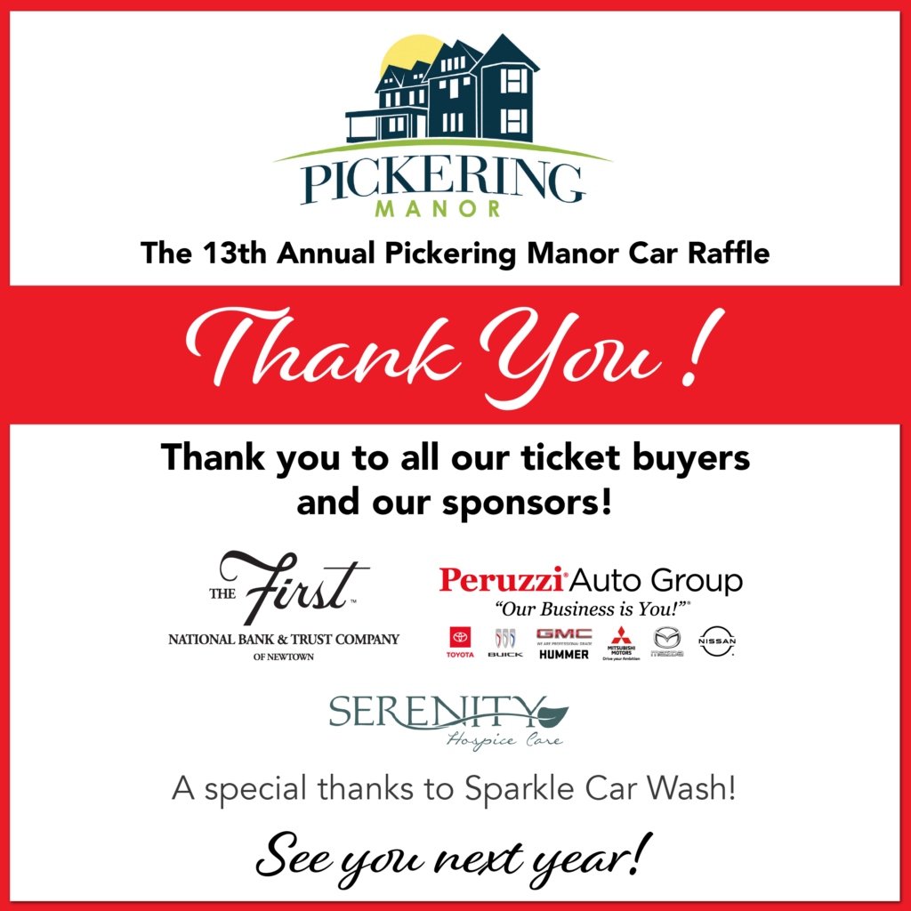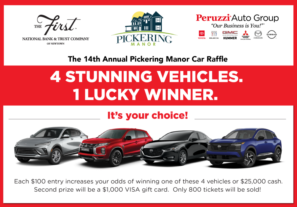 Mark your calendars! Pickering Manor will host its 13th Annual Car Raffle in April of 2027. With only 800 tickets available, this exciting event offers you a chance to win big!