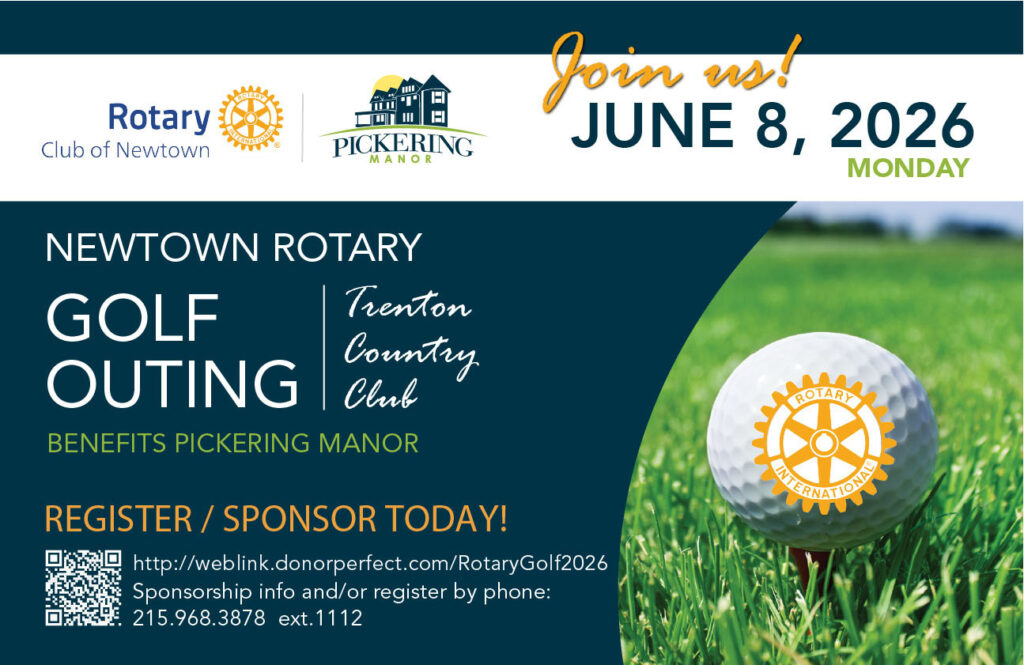 Every June, the Newtown Rotary hosts a golf outing at Trenton Country Club to benefit the residents of Pickering Manor. Donors can participate either through the purchase of a ticket, sponsor through their company, or donate to the raffle.